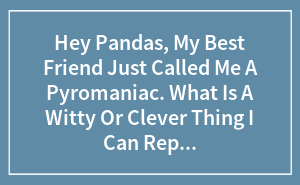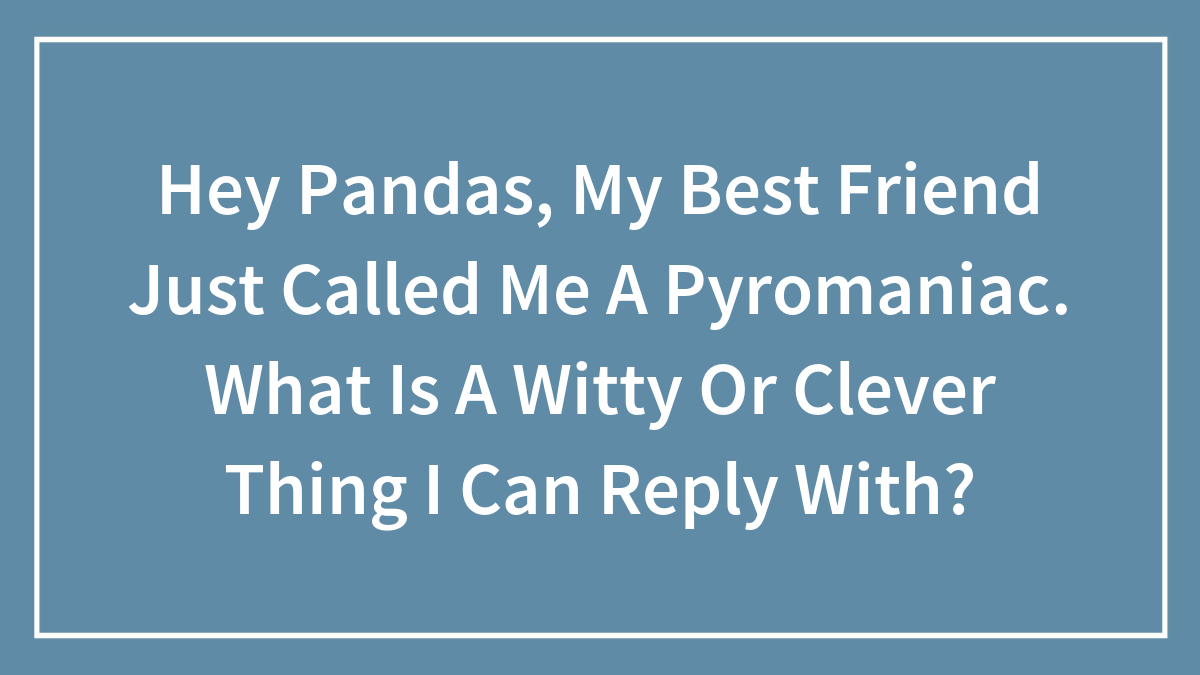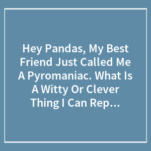 Hey Pandas, My Best Friend Just Called Me A Pyromaniac. What Is A Witty Or Clever Thing I Can Reply With?