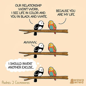 Our Relationship Won't Work, I See Life In Color And You In Black And White. ... Because You Are My Life. ... Awww ... I Should Invent Another Excuse ...