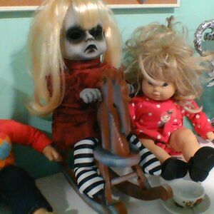 My adult dog:Mimi and baby (Real name is Emilia) Puppy: Pup Pup, May May, Mace, Moo Moo, and hotdog (Real name is Macy) Cat: Chunky butt, Chunks, babe, Marky, and also Moo Moo (Real name Mark)