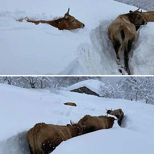 Cows Making Their Way Through The Very Deep Snow Cover On The Slopes Of Montes De León In Northwestern Spain Yesterday, Jan 9th. Do You Think They Like The Snow Or Do They Just Want To Get To The Stables Asap?