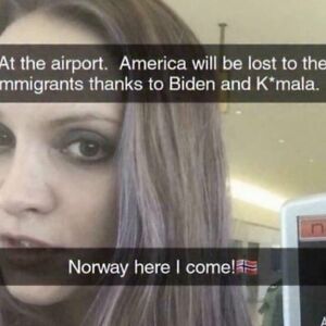 ”at The Airport. America Will Be Lost To The Immigrants Thanks To Biden And K*mala. Norway Here I Come!”