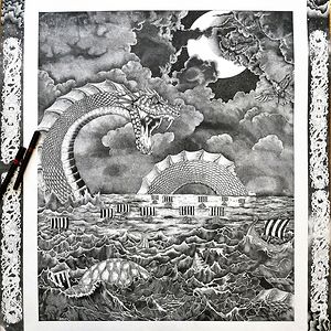 Artist working with stippling technique