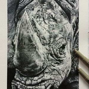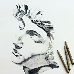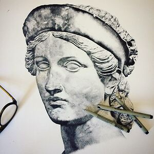 Artist working with stippling technique