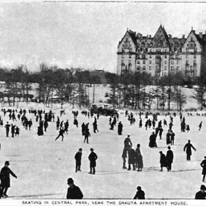 Ice Skaters In Central Park In New York City, With The Dakota Apartment House Visible In The Background. 1898