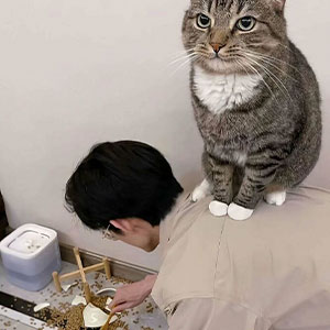 Female cat comes to get me when her brother doesn't let her eat because she knows he won't dare bully her when I'm around. Also, they both fart on you, which is pure, evil, biological warfare.
