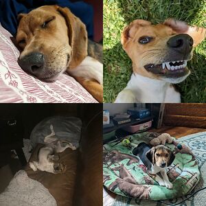 My Family Adopted One Of The Thousands Of Beagles Rescued From The Envigo Breeding Facilities In Virginia. It's Amazing To Watch Her Grow Into Her Goofy And Crazy Self. The First Day We Brought Her Home In The Bottom Right. Otherwise Being A Crazy Nutball 🥲💓 We Love Her So Much