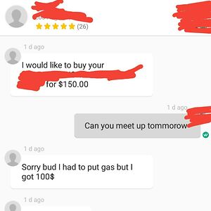 Offers 150, Then Suddenly Says 100 Because He Has To Put Gas. "I'll See You Today." Hahah Yeah Right