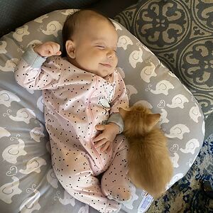 Our Cat Had Kittens 2 Days After We Had A Baby. This Kitten Climbs Into The Lounger With Her Whenever He Has The Chance. I Think These Two Were Destined To Be Best Buds