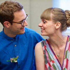 Last year of college for us. He'd show up after my classes and follow me around everywhere, talking incessantly. When he'd see me on campus he'd run over to say hi. I would flirt by sometimes picking a little wildflower to give to him when I saw him next that day. He'd wear it in his shirt or behind his ear. We now have 2 sons and he's taught the older one (younger is a baby) to give me little wildflowers when we're out walking together. 😀