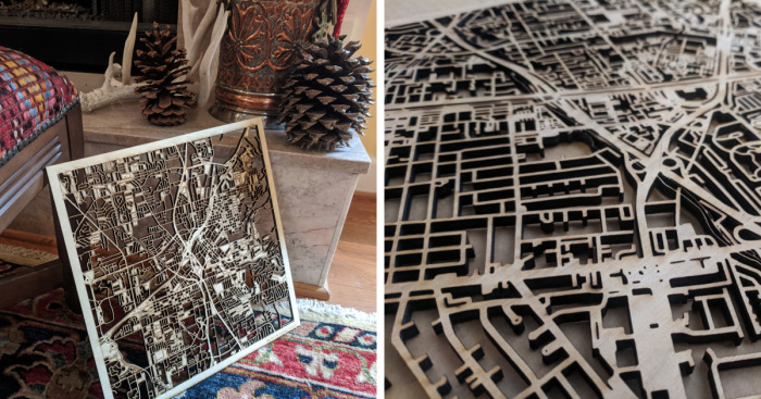 We sell laser cut maps. Almost any location in the world. Made with love and robots.
