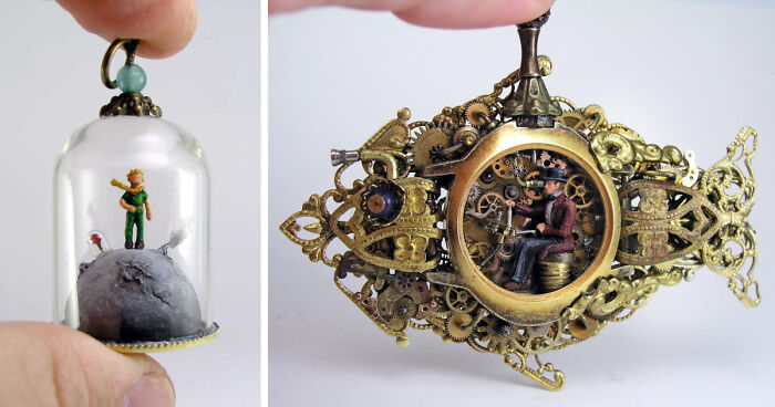 I am a miniature artist and I make complex tiny worlds inside jewelry pieces.