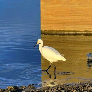 This Is A Real Picture Taken By Photographer Keinichi Ohno. It's A Single Photo Of A Bird Standing At The Edge Of Some Water With A Wall And Its Reflection Creating A Fascinating Optical Illusion