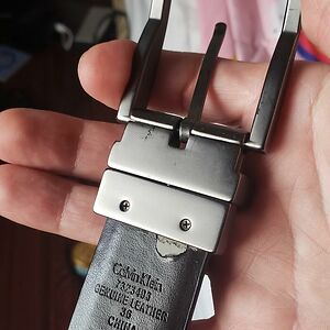 My "Genuine Leather" Calvin Klein Belt. Got Home, Tore Off The Tag Which Peeled Back The Plastic Coating Revealing The Rubber Core