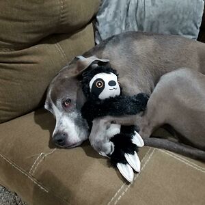 My Son Has Noticed How Old Our Dog Is Getting, So He Tries To Comfort Her With His Stuffed Toy Sloth. She Loves It