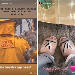 Kylie's Instagram Story Straight After She Cried About Koalas Dying. Her Slippers Are Made Of The Mink Fur