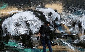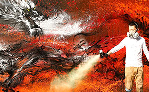 Creative techniques: Traditional Chinese art and Western art graffiti combine personal creative splashing ink on Chinese ink art. Explores new ways to combine Western styles with traditional Chinese methods and elements including ink painting.