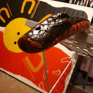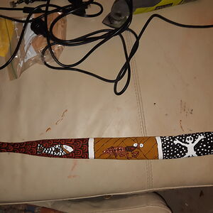 Woomera (Spear Thrower). Carved From A Piece Of Gum Tree Then Painted With Ochre, The Hook To Hold The Spear On Is Fixed With Grasstree Resin And Twine Made From Lomandra Grass. All Materials Came From The Bush
