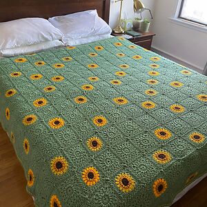Finally Finished My Sunflower Blanket After About 3 Years... Simply Sunburst Granny Squares With A Flat Braid Join