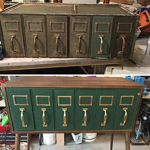 Pulled Out Of A Trash Heap. It Was One Part Of A Military File Cabinet. Thorough Cleaning, Paint And A Little Shining Up Followed By Wrapping It In Wood From My Scrap Pile. Added Some Legs And Bingo Bango!