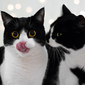 We are Izzy & Zoë, mixed British Shorthair sisters. However, Zoë doesn't understand the concept of 'shorthair' and became The Fluff Instead. Izzy also goes by the name Princess Izzelina and Zoë is self-proclaimed Queen Of Hearts, due to the heart-shaped marking on her chest.