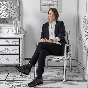 As a digital Artist, Jacquetta has a distinct style of bold colours and layered lines that create minimalist faces.