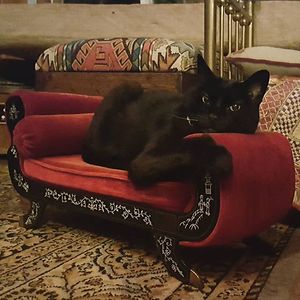 I Found This Beautiful Chaise For $6 At A Church Thrift Store. It Was My Cat's Favorite And When She Passed We Retired It To A Shelf In Our Library In Her Honor