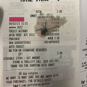 I Unintentionally Smudged KFC Grease On A Reciept, Revealing A Redback Spider From An Ad On The Other Side. Heart Missed A Beat When I Took It From My Wallet