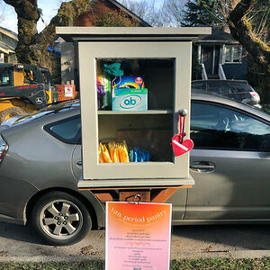 I Was Walking My Dog This Morning In Vancouver And Saw Someone Built A Free Deposit Period Pantry For Folks Who Can't Afford Or Access Menstruation Products