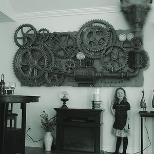 A Giant Kinetic Industrial Wall Sculpture Or Mural. (steampunk To The Max !) 8 Feet Wide X 5 Feet High And Approximately 250 Pounds. Made Of Mdf Wood
