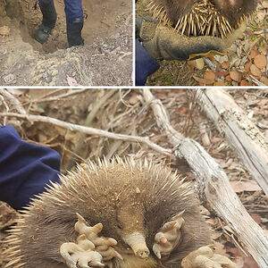 Echidna We Rescued At Work. This Little Guy Got Stuck In The Bottom Of A Shallow Mineshaft. We Could Only See His Little Spikes Sticking Out Of The Dirt