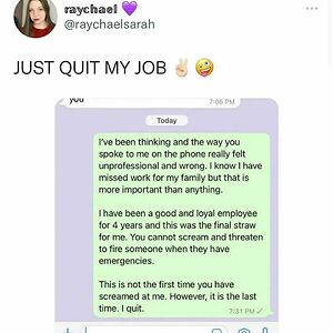 Anyone Who's Gonna Say She Should've Left A 30 Days Notice, No She Didn't. They Were Disrespectful And Threatened Her And She Owes Them Nothing But That Savage "I Quit" Text. Cc: @raychaelsarah