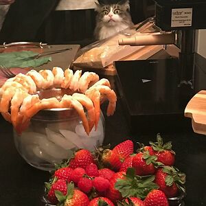 My Mother-In-Law's Cat Is Obsessed With Shrimp. She Makes This Face Whenever There Is Shrimp On The Table