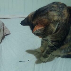 Just Started Dating A Girl After Being Single For A Long Time. My Cat Was Transfixed By The First Sight Of A Bobby Pin