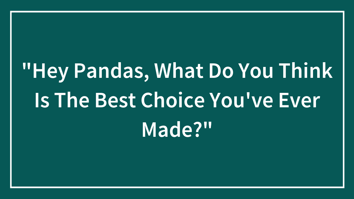 Hey Pandas, What Do You Think Was The Best Choice You've Ever Made?"