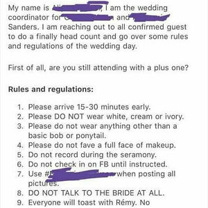 Kindly Refrain From Upstaging The Bride On Her Big Day — Oh, And No Admission Without A Gift Of $75 Or More