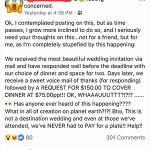 Bride Gets Rsvps From Wedding Guests And Only After The Fact Tells Everyone Who Said They Were Coming That They Need To Pay $75 Per Plate
