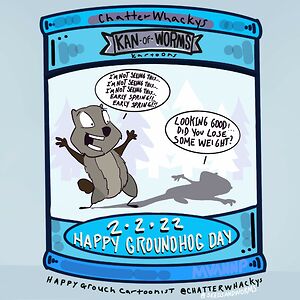 Happy Grouch illustrates ~ pan-fried whatnots in pursuit of smiles and wonder - Illustrated topical did-you-knows / playful predictions: fav 📽️🍿 Groundhog Day :: Tiki Circus :: TROPIC OF MONSTERS :: KAN -OF-WORMS