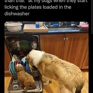 We have to stand guard while our dog eats because the chickens will steal his food and he will let them because he’s trained to stop touching food if someone interacts with his food. It does not occur to him that this rule only applies to humans and not to chickens.