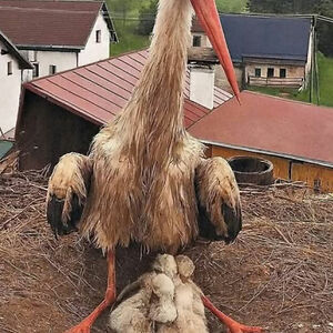 Father Of The Year: After The Mother Stork Tragically Died From H**h-Voltage Power Lines, The Devoted Father Stayed To Care For His Four Chicks