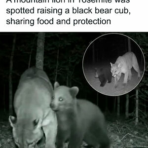 Wildlife Cameras In Yosemite National Park Recently Captured An Extraordinary Sight: A Mountain Lion Caring For A Black Bear Cub