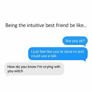So I came back loudly with, “well not really but you hit my car in a parking lot a few years ago when I was a broke college student and stuck me with the bill. Do you wanna open a tab for the wine or close out now?”