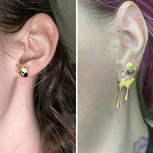 Elevate Your Style With Bee And Dripping Honey Asymmetric Stud Earrings: Embrace Unique Elegance And Nature's Beauty