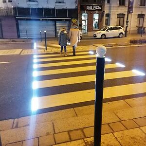 Luminous Pedestrian Crossing In France, When A Person Is Detected The Lights Turn On To Warn The Drivers