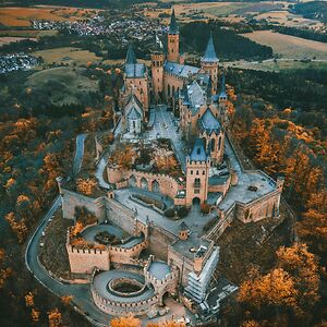 Hohenzollern Castle, The Ancestral Seat Of The Imperial House Of Hohenzollern, Built On A Hilltop Overlooking The Autumn Forest And The Villages Beyond, Bisingen, Baden-Württemberg, Germany