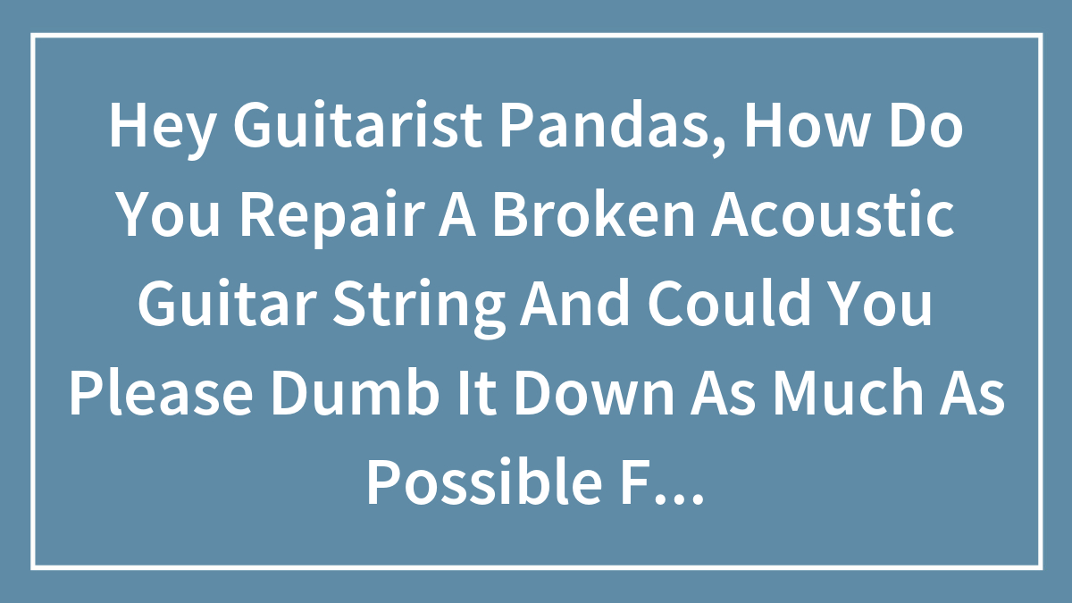 Hey Guitarist Pandas, How Do You Repair A Broken Acoustic Guitar String And Could You Please Dumb It Down As Much As Possible For Me :,)