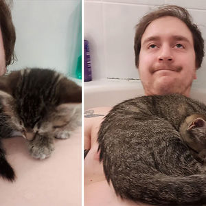 The First Day I Got My Kitten, I Took A Bath, She Somehow Managed To Hop The Tub And Take A Snooze On My Shoulder