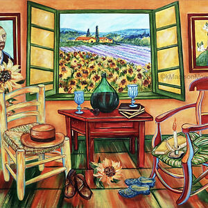 I see another reimagined piece is in my view after researching the relationship between van Gogh and Gauguin and Vincent’s chair paintings. Another painting completed, another vision is executed. The Title is: Together Forever - Van Gogh & Gauguin.