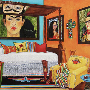 I need my work to have meaning. I need to reimagine what would be if I could change things the way I want them or I see them in my minds eye. I like to create spaces for Frida Kahlo that are bright and happy to reflect a happier life for her if she were here today than she experienced in her real life. She is such an inspiration to me. I consider Frida as one of my muses for sure. This Series is titled: Forever Frida