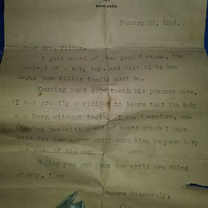 A Friend Gave This To Me. A Congratulation Letter 1941, From A Dentist To His Patient, On The Birth Of Her Son