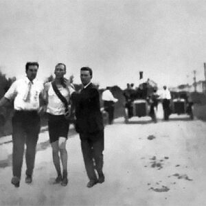 From the last time this was asked: The Marathon at the 1904 Olympics in St. Louis. The first place finisher did most of the race in a car. He had intended to drop out, and got a car back to the stadium to get his change of clothes, and just kind of started jogging when he heard the fanfare. The second place finisher was carried across the finish line, legs technically twitching, by his trainers. They had been refusing him water, and giving him a mixture of Brandy and Rat Poison for the entire race. Doping wasn't illegal yet (and this was a terrible attempt at it), so he got the gold when the First guy was revealed. Third finisher was unremarkable, somehow. Fourth finisher was a Cuban Mailman, who had raised the funds to attend the olympics by running non-stop around his entire country. He landed in New Orleans, and promptly lost all of the travelling money on a riverboat casino. He ran the race in dress shoes and long trousers (cut off at the knee by a fellow competitor with a knife). He probably would have come in first (well, second, behind the car) had it not been for the hour nap he took on the side of the track after eating rotten apples he found on the side of the race. 9th and 12th finishers were from South Africa, and ran barefoot. South Africa didn't actually send a delegation - these were students who just happened to be in town and thought it sounded fun. 9th was chased a mile off course by angry dogs. Note: These are the first Africans to compete in any modern Olympic event. Half the participants had never raced competatively before. Some died. St. Louis only had one water stop on the entire run. This, coupled with the dusty road, and exacerbated by the cars kicking up dust, lead to the above fatalities. And yet, somehow, Rat Poison guy survived to get the Gold. The Russian delegation arrived a week late, because they were still using the Julian calendar. In 1904. Funny